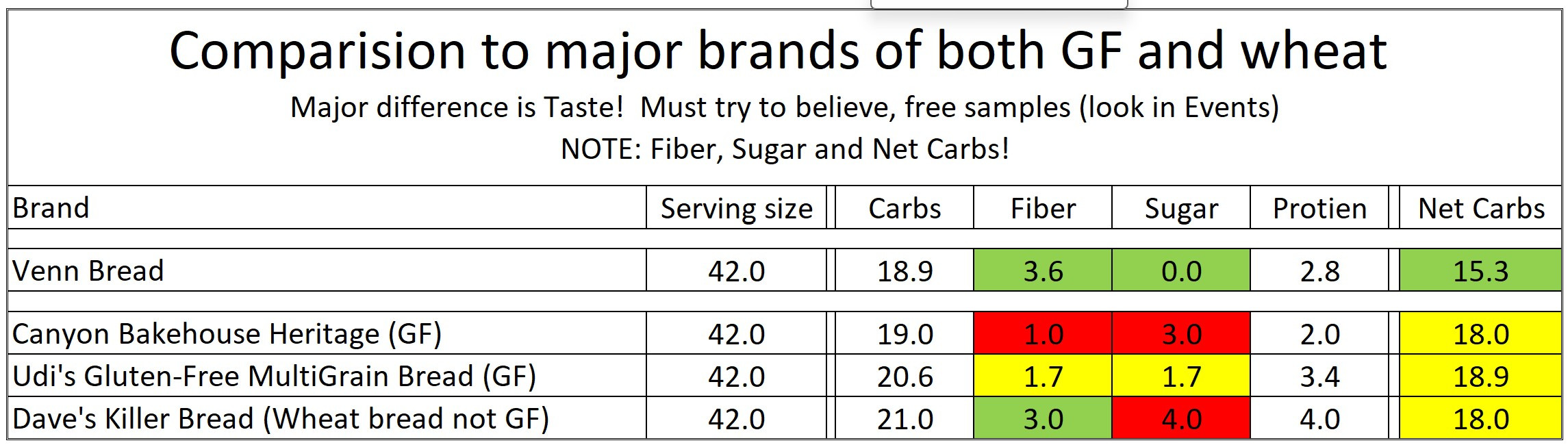 *This information is calculated from the nutritional labels on all the ingredients that are used to make Venn Bread and has not been approved by any government agency. (as of 10/2024)