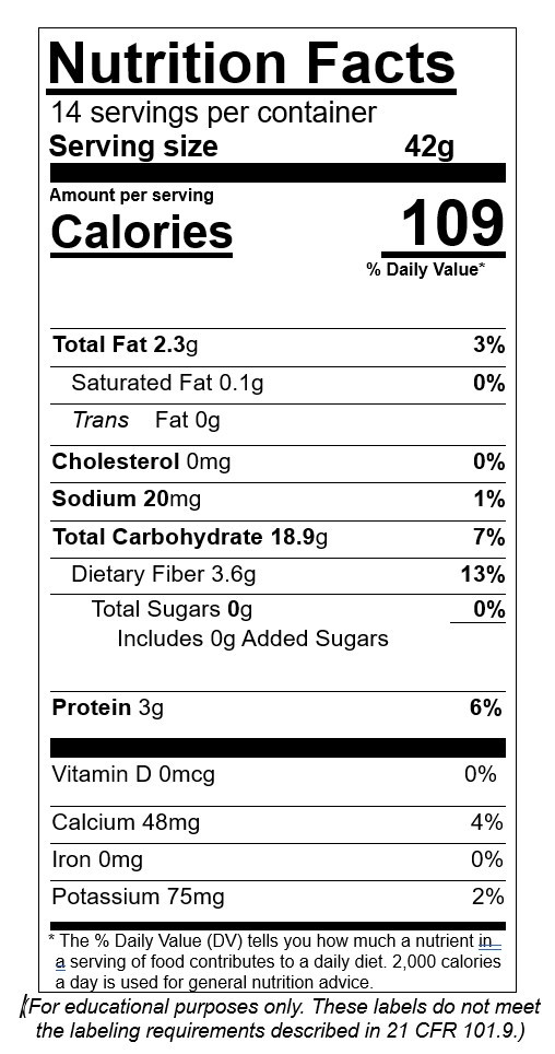 *This information is calculated from the nutritional labels on all the ingredients that are used to make Venn Bread and has not been approved by any government agency. (as of 10/2024)